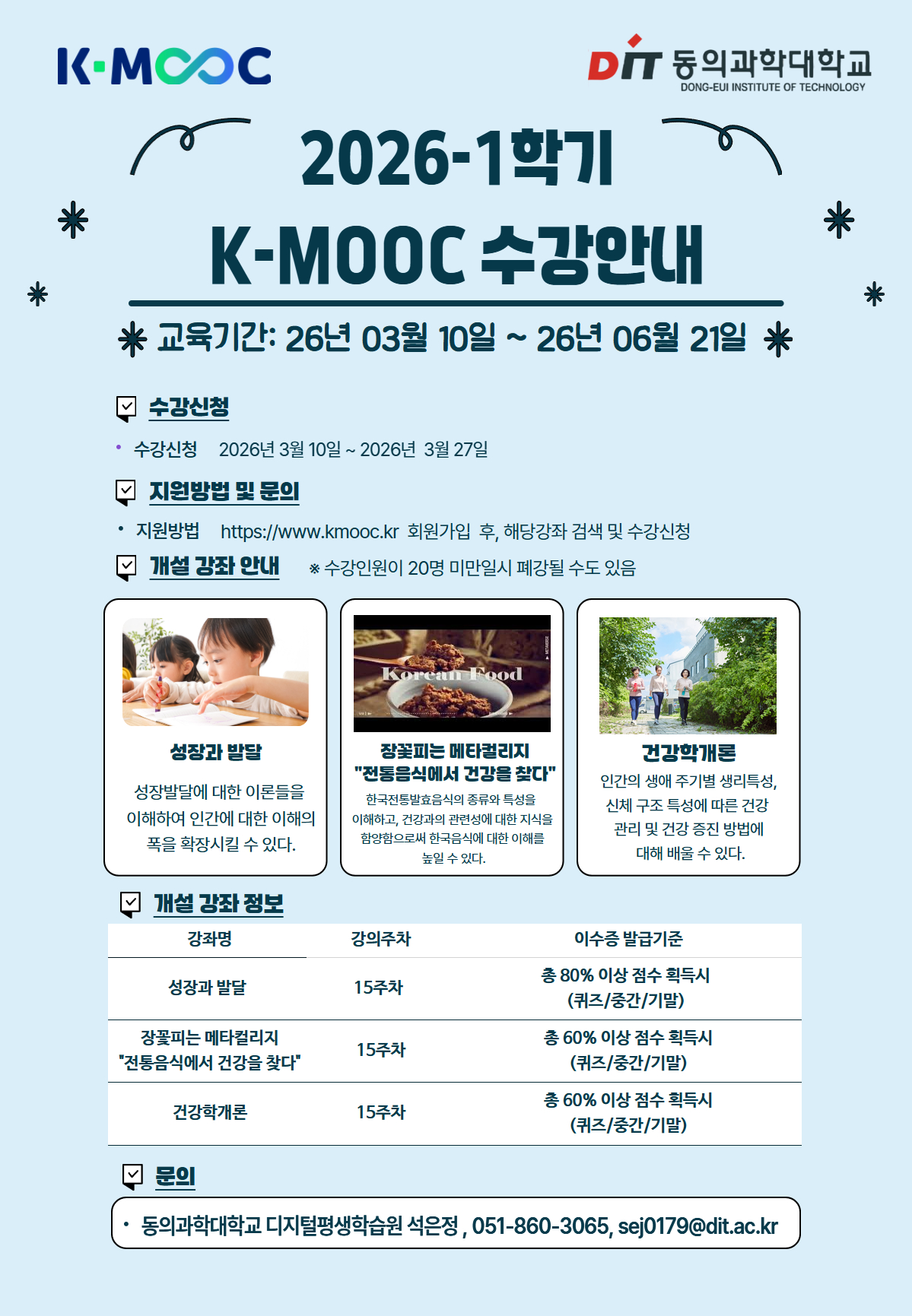 - 동의대학교 2026년 1학기 K-MOOC 강좌 수강 안내