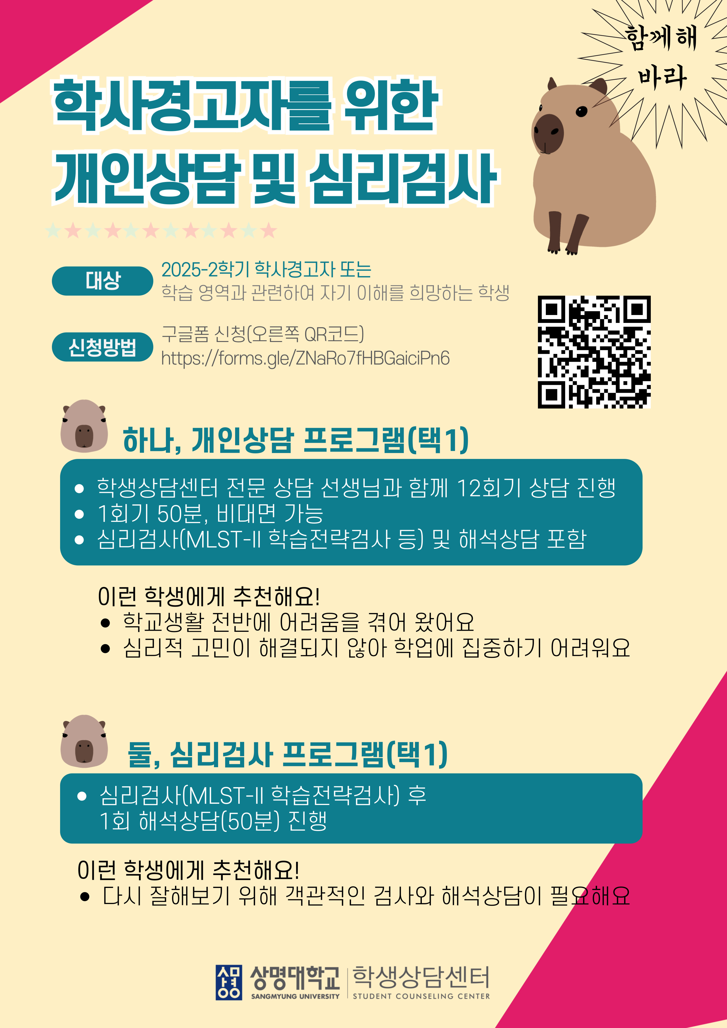 서울 [학사] 2025학년도 제2학기 학사경고자 면담 및 프로그램 시행 안내 -