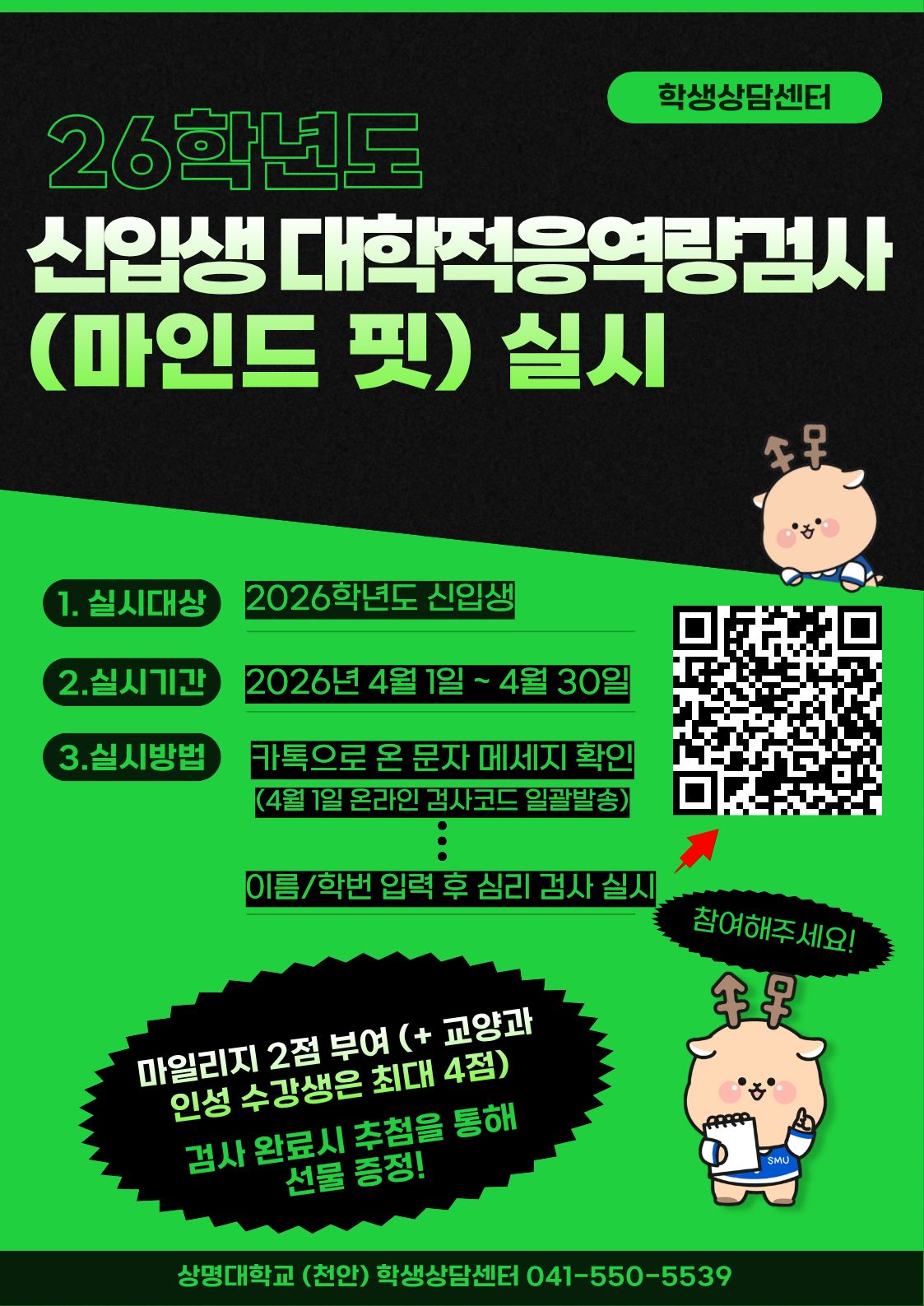 [학생상담센터] 2026학년도 신입생 적응역량검사(마인드핏) 안내